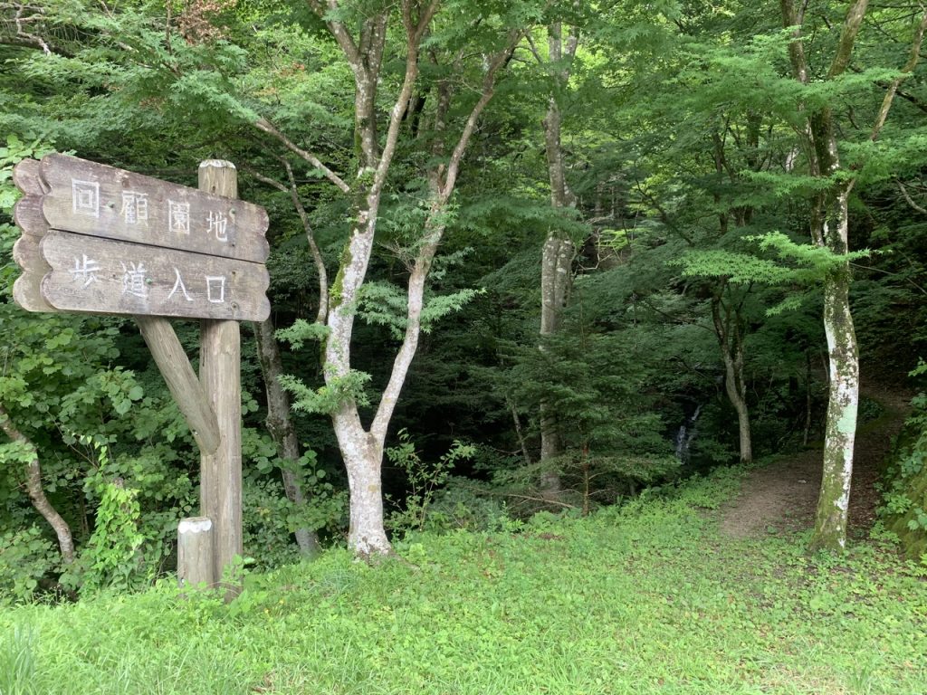 回顧園地歩道入口から入っていくと滝の音が聞こえてきます。