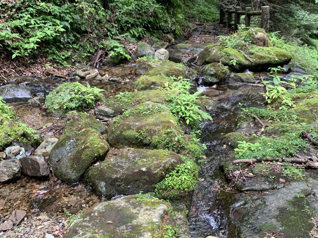 1分ほど奥に歩いていくと橋が架かっている奥に滝が見えてきました。
