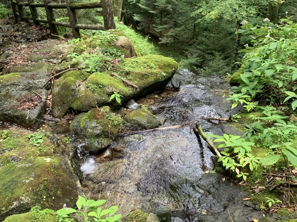 遊歩道の岩の隙間を通って滝になっており、道の区別がわからない状況になっていました。