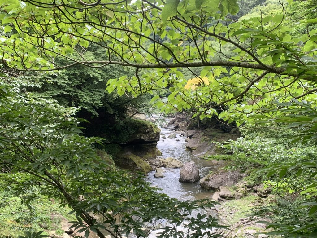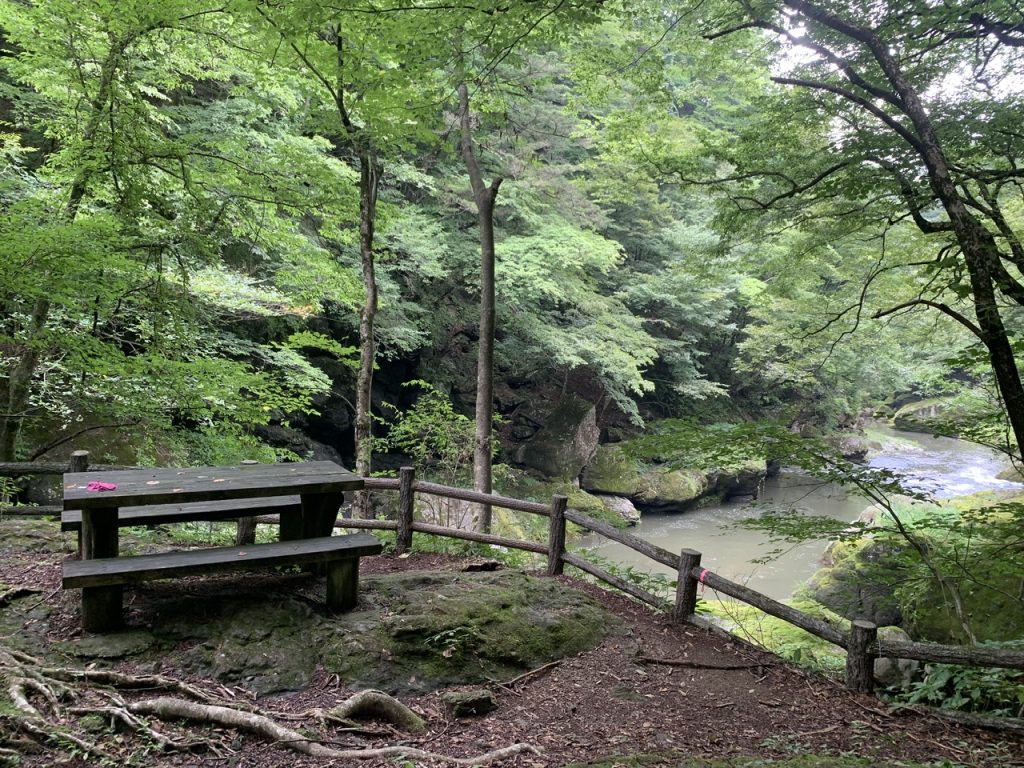 観覧スペースには椅子もあり、対岸に流れる箒川の渓谷が静かな時間の流れを感じることができました。