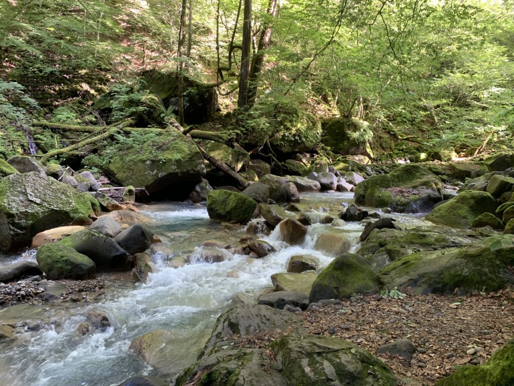 流れる水は火山の成分を多く含んでいる為、沢の水は辛くて飲めないことから「酢辛い沢」と呼ばれ、呼び方がなまって「スッカン沢」となったそうです。