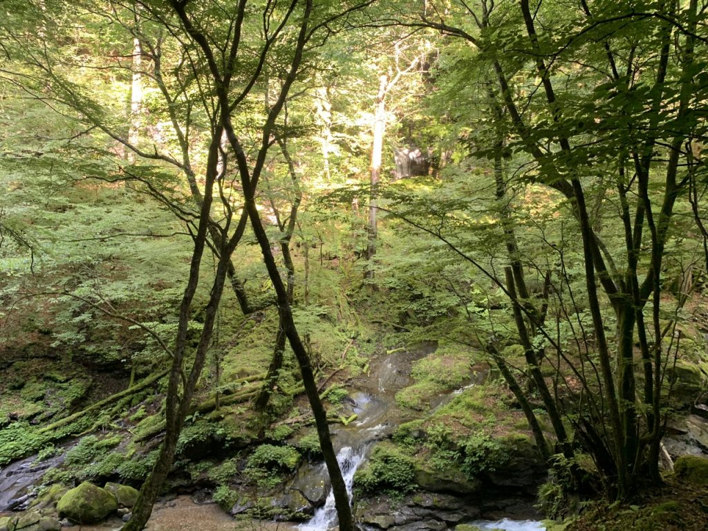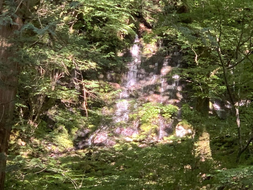 渓谷の絶壁からいくつも湧き出る白い筋の水の流れは美しく、マイナスイオン広がる美しい滝でした。