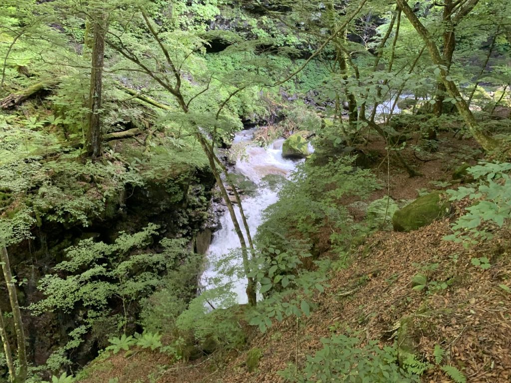 滝つぼを見に行くにはスッカン橋から整備されていない道を進む必要があります。