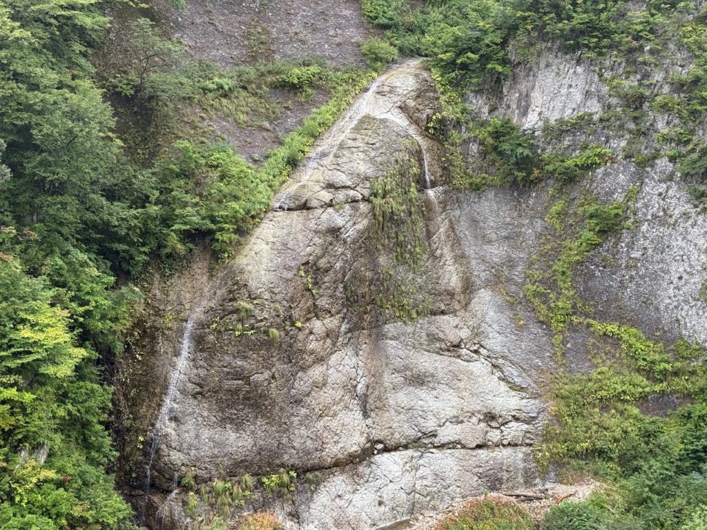 普段は水が少なくて激しく流れ落ちる滝の姿は見られませんが、降雨時は上方から岩壁全体に水が滴り落ちて素敵な水の流れが見れるとのことです。
