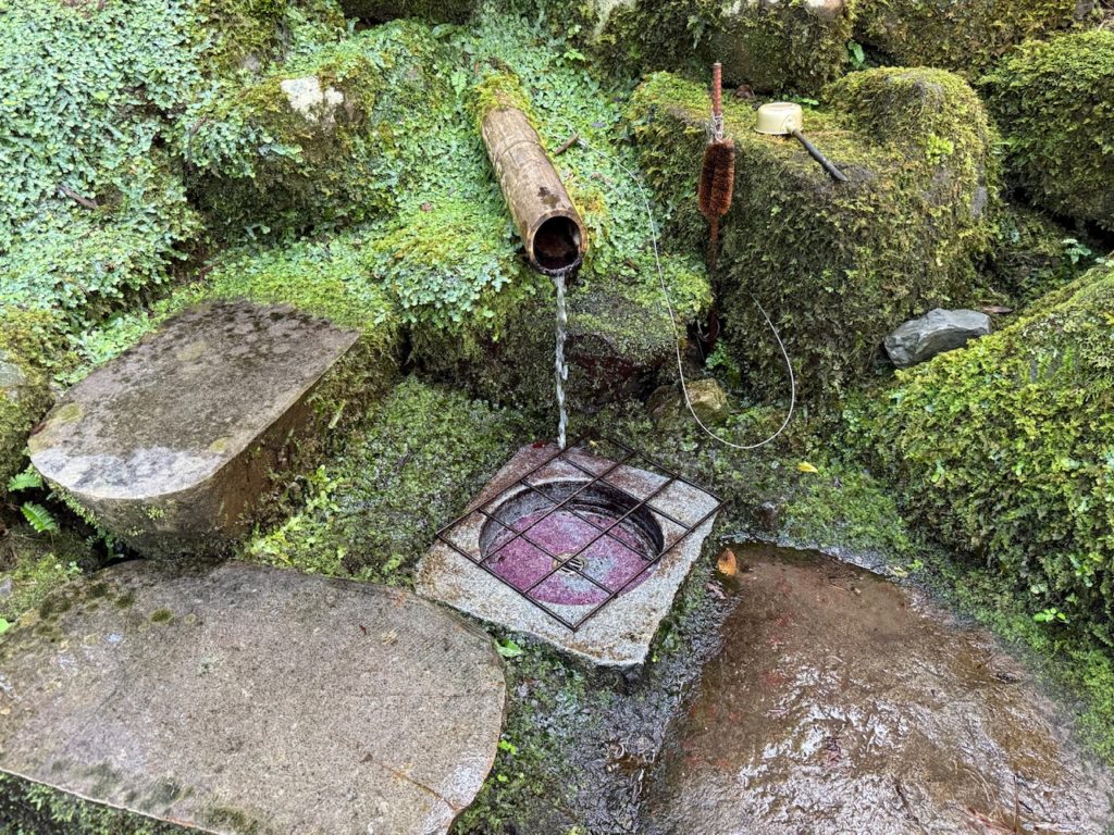 ひっそりと木の立て看板があり、福井の美味しい水と記載されていて湧水が流れていました。