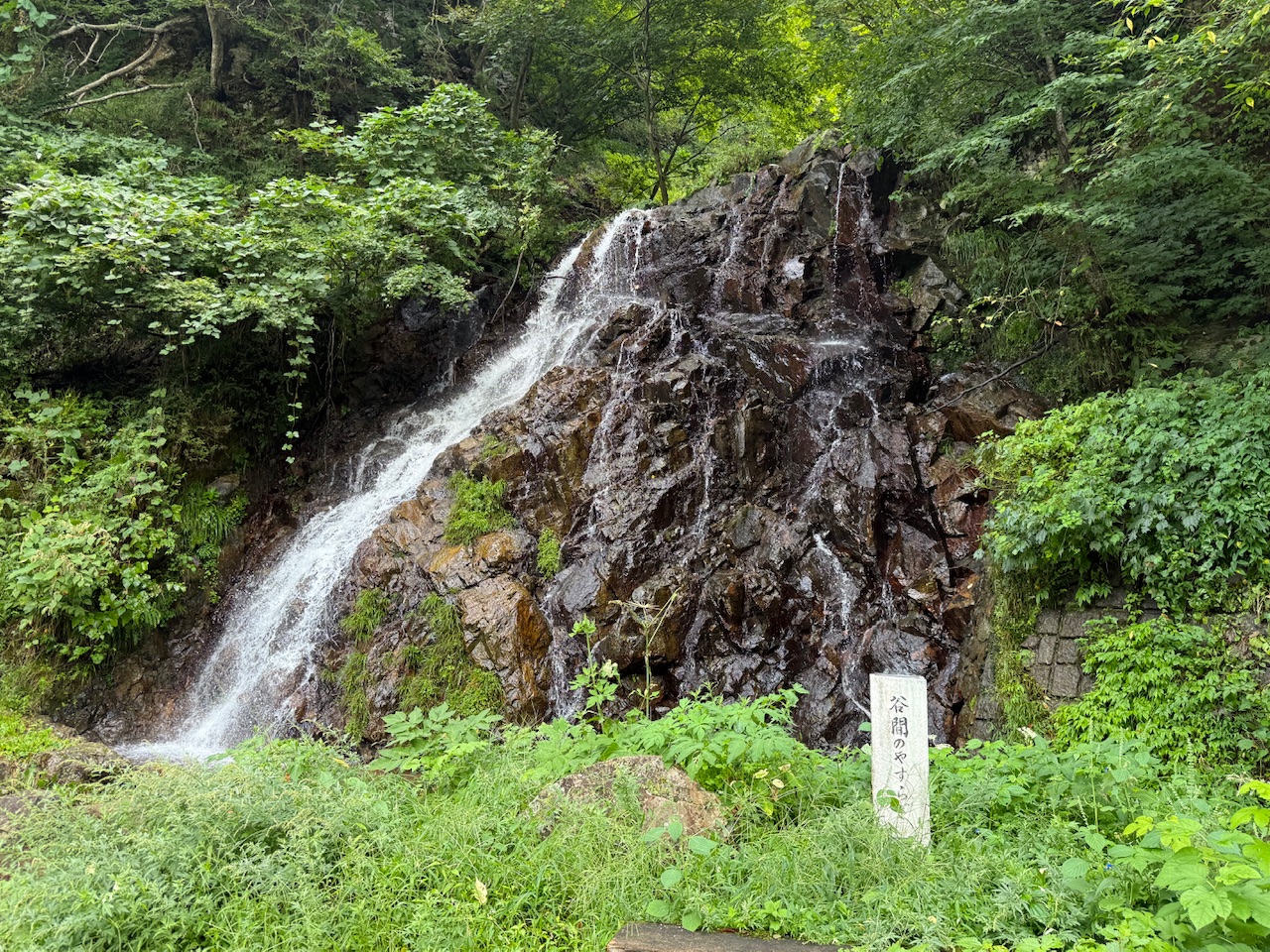 滝の前には「谷間のやすらぎ」という石碑が立てられていました。