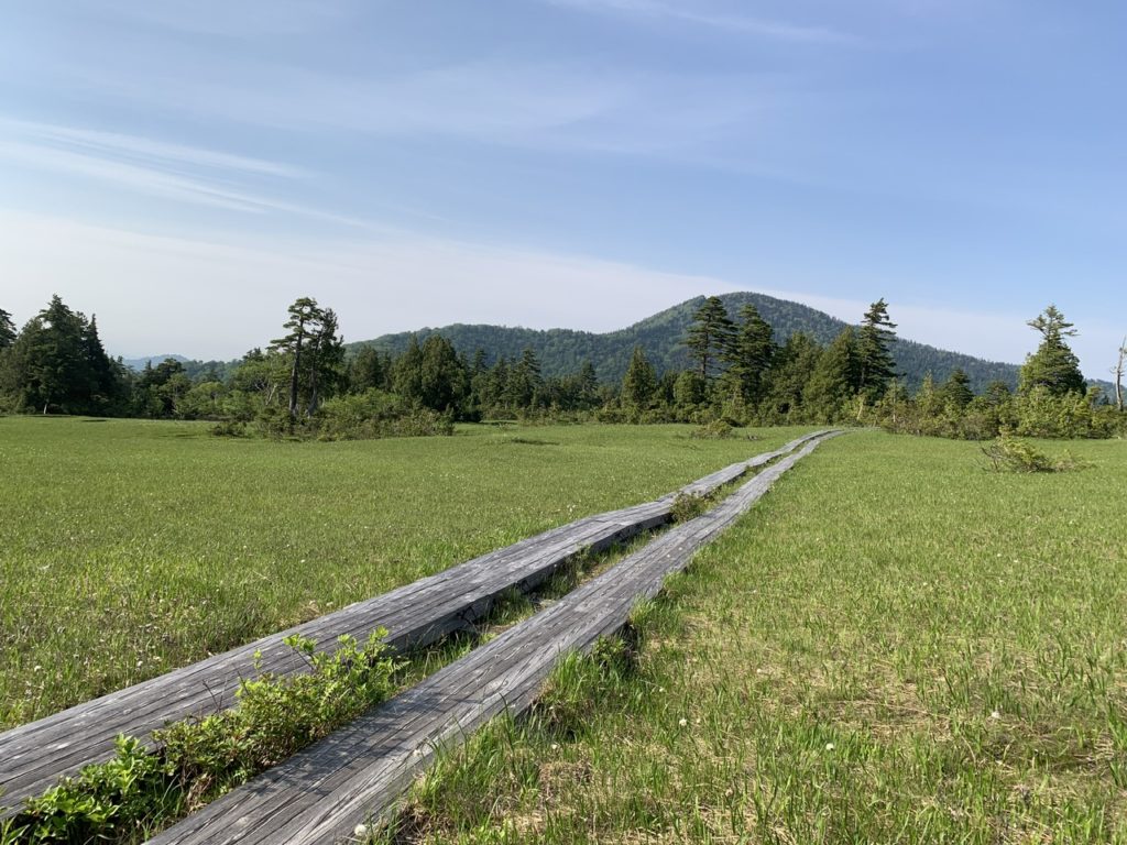御池駐車場から出発し、湿原を通りすぎ小川や橋を渡ってひたすら歩きます。
