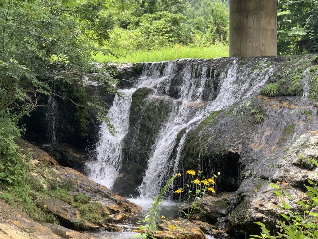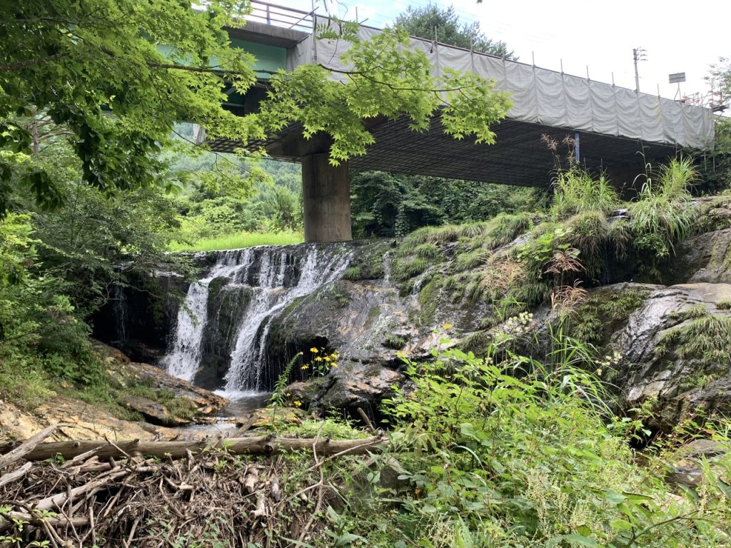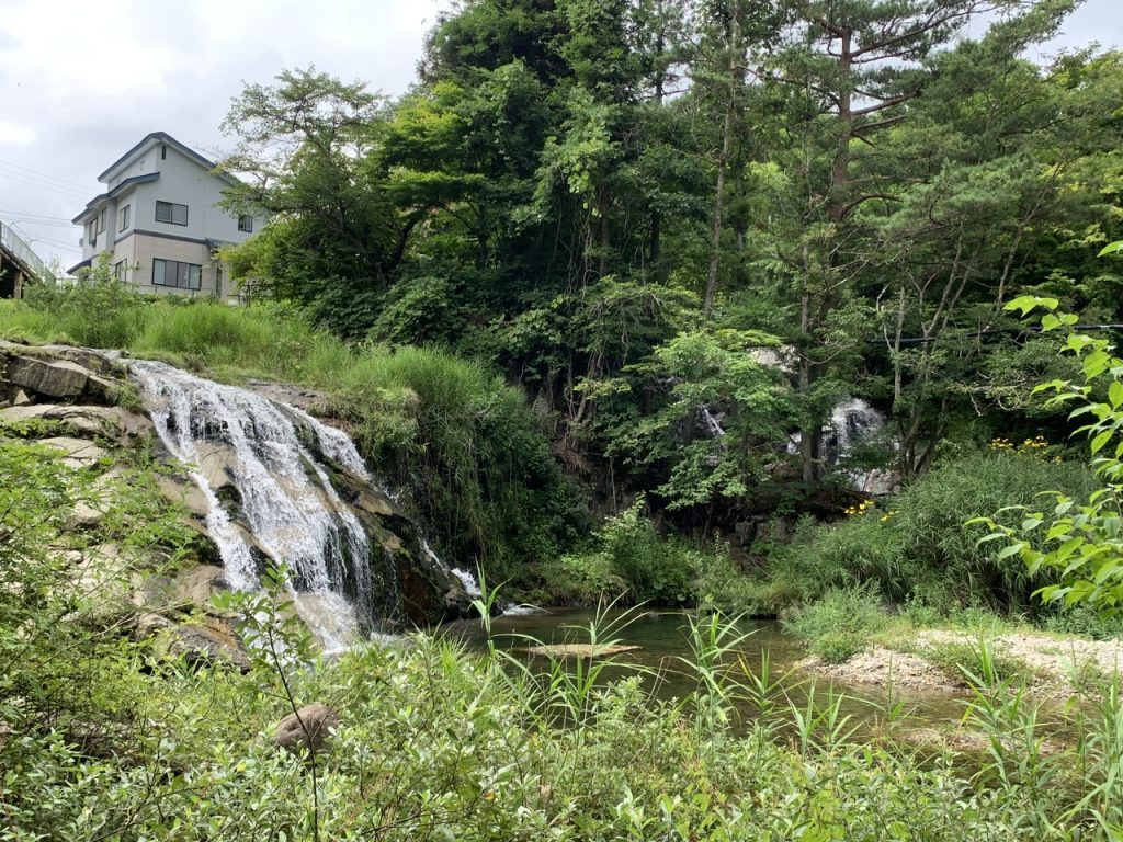 南会津町を流れる荒海川と鎌越沢の合流地点にある落差5〜6mほどの滝です。