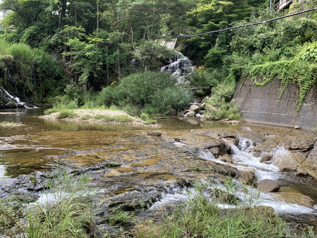 昭和30年代頃は滝へ下る道があり、夏は子供たちの水遊びの場となっていたこともありましたが、現在は道も撤去されており遊泳禁止となっています。