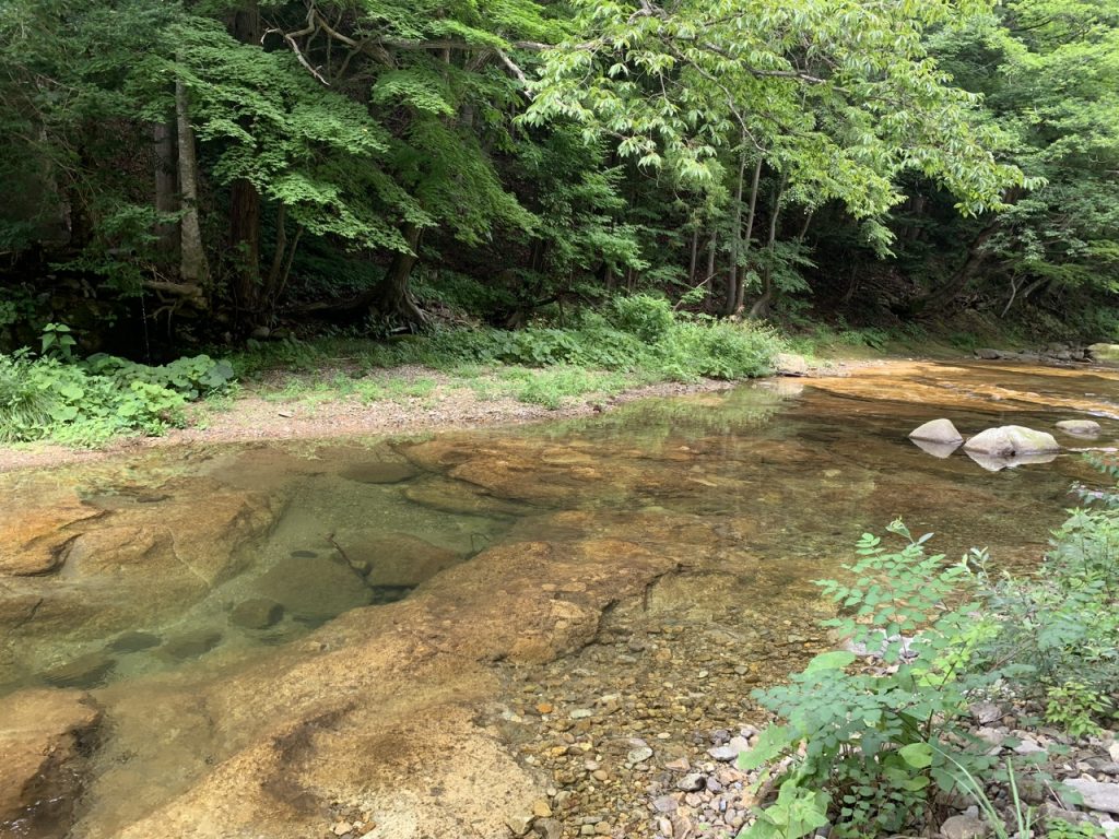 踏み跡があるので、ゆっくり下っていけば河川まで降りられます。