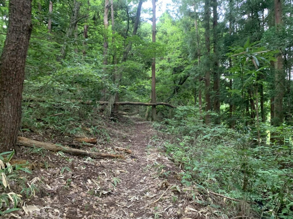 案内に従っていくと山道になり、倒木を避けながら進むこととなります。