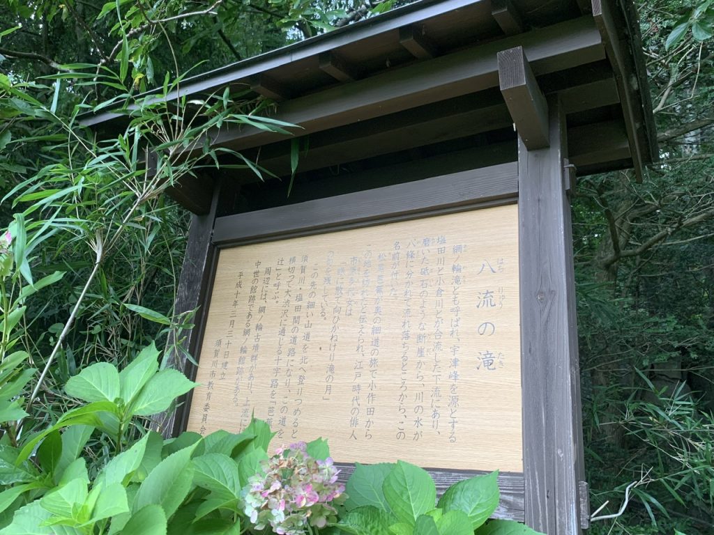 網の輪滝とも呼ばれ、宇津峰を源とする塩田川と小倉川とが合流した下流にあり、磨いた砥石のような断崖から、川の水が八條に分かれて流れ落ちるところから、この名前が付いたとのことです。