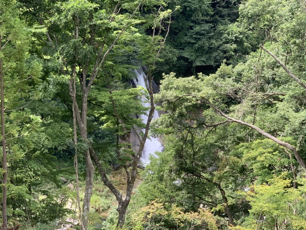 木が多いので滝が隠れてしまい、全体を見れる位置がないので、残念ながら素敵な滝の全貌は見れませんでしたが、迫力ある滝でした。
