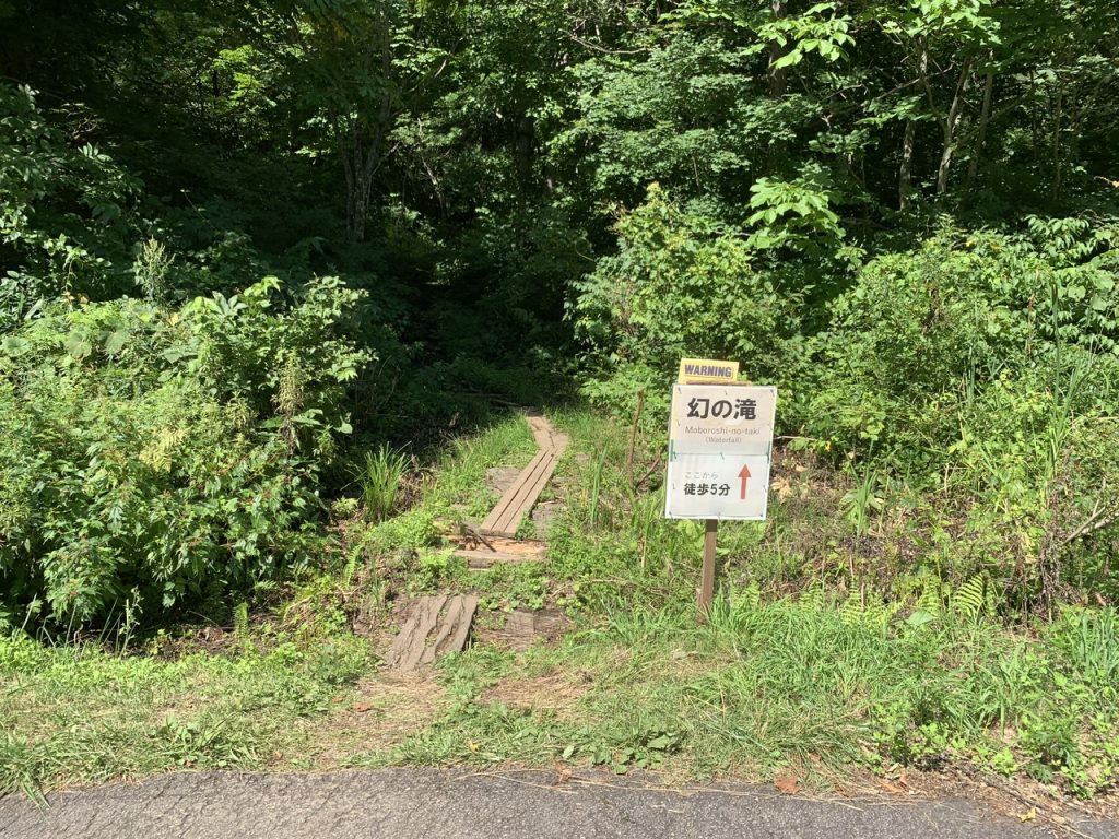 幻の滝と記載されている看板が立っている駐車スペースに車を停めて案内版に従って行ってみます。