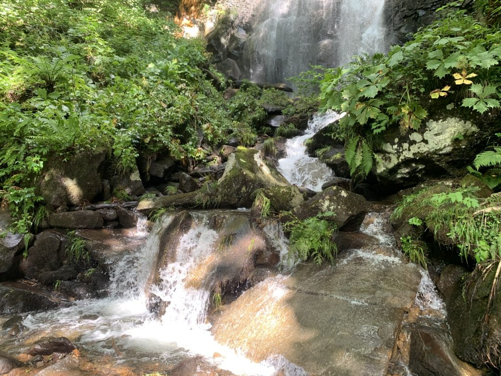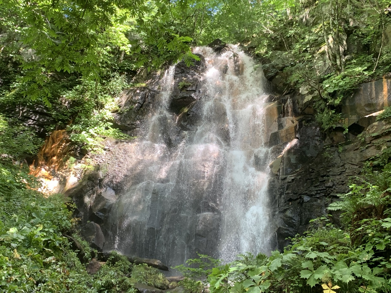 水量もあり迫力ある滝で、水も冷たく綺麗な清流で水遊びもできそうで夏によいスポットだと思います。