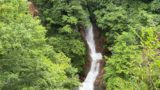 飯坂温泉郷から国道399号を北上すると摺上川に架かる滑滝橋から落差4mの滝が現れます。