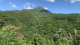 車道沿いの反対側にある川に掛かる滝かと思って探していたら、反対の崖から流れている滝でした。