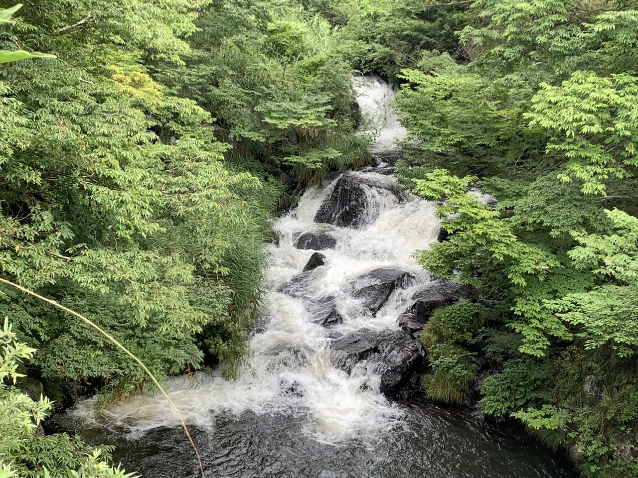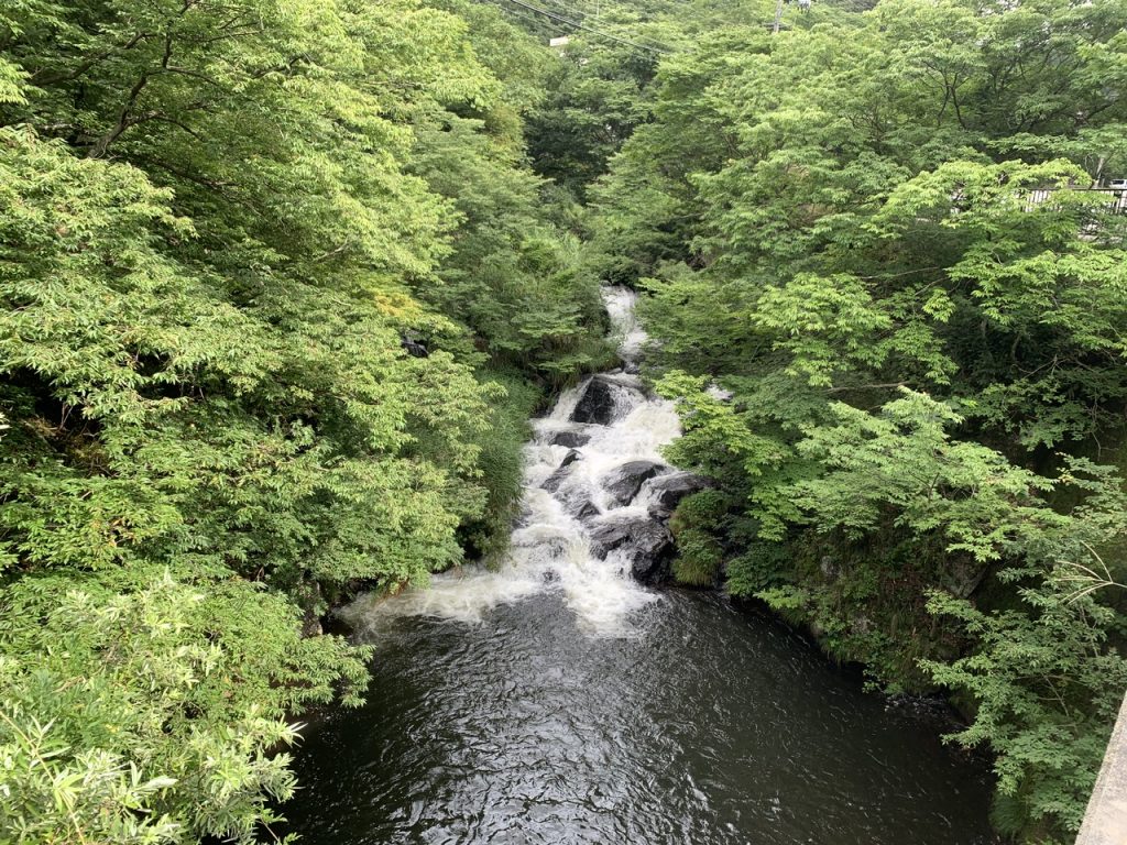温泉街を通る道路を少し山側に奥に入った先に滝があります。