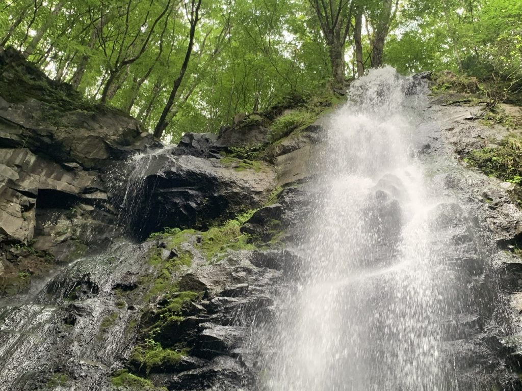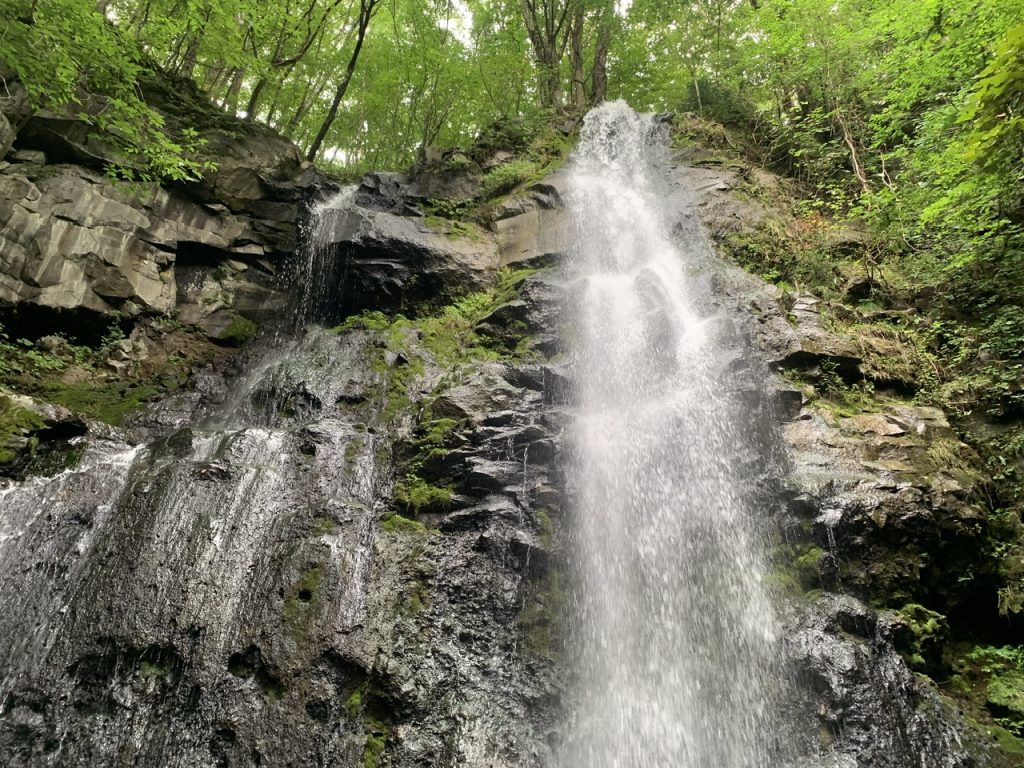 滝の近くまで寄ってみると水飛沫がかかりマイナスイオンたっぷりで涼しいです。