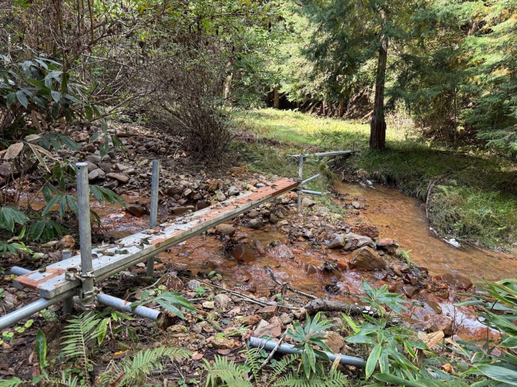 ほどなく歩いていくと小川があり簡易な橋が架かっていました。