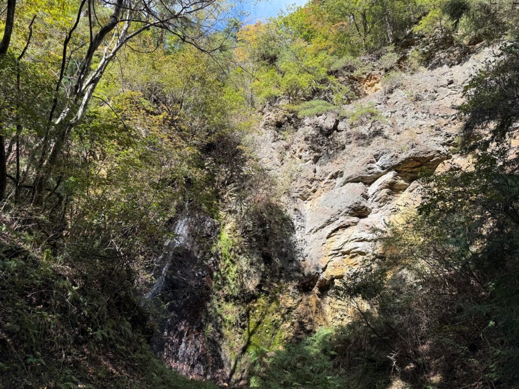 車道から歩く距離もす少な目で冬でも来ることができそうな場所なので、この斜めの岩壁に張りついた氷瀑を見にきてみたいなと思いました。