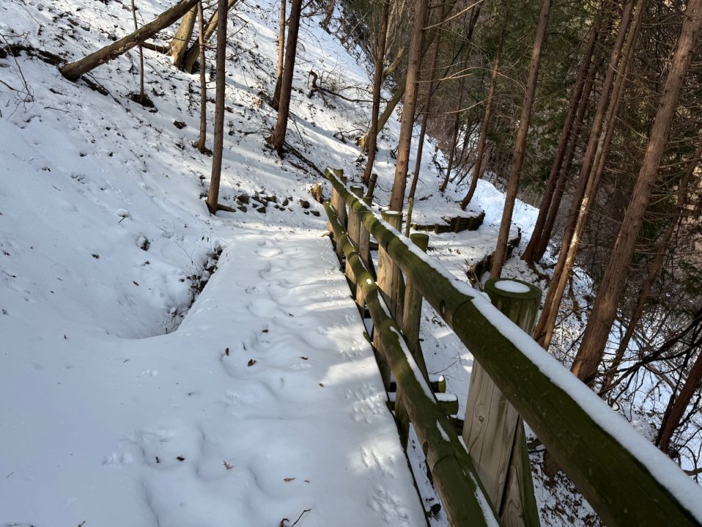 民家を抜けて整備さていない山道を走り、急な坂道を登っていくことになり、5cmほど雪が積もっていましたので、車がスリップしないかびくびくしながら山道を登っていきました。
