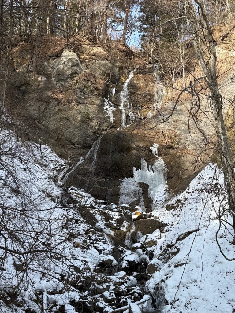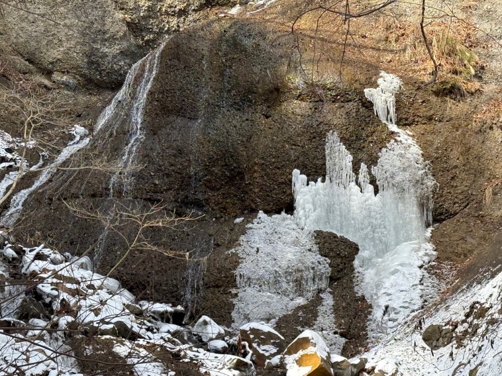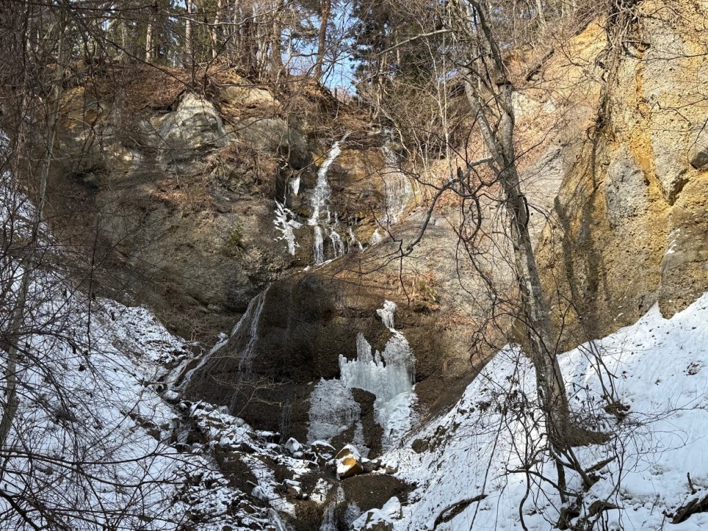 水量も少なく氷結もしていなかったので、少し迫力に欠けましたが、完璧の造形が素敵な滝でした。