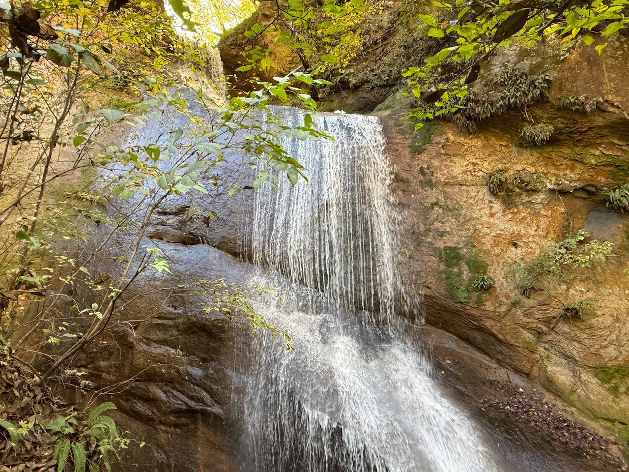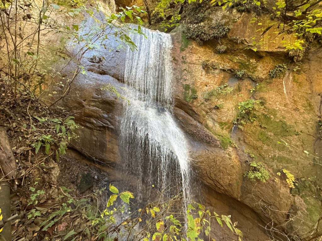 先に進むと目の前に絶壁から流れる滝が現れました。