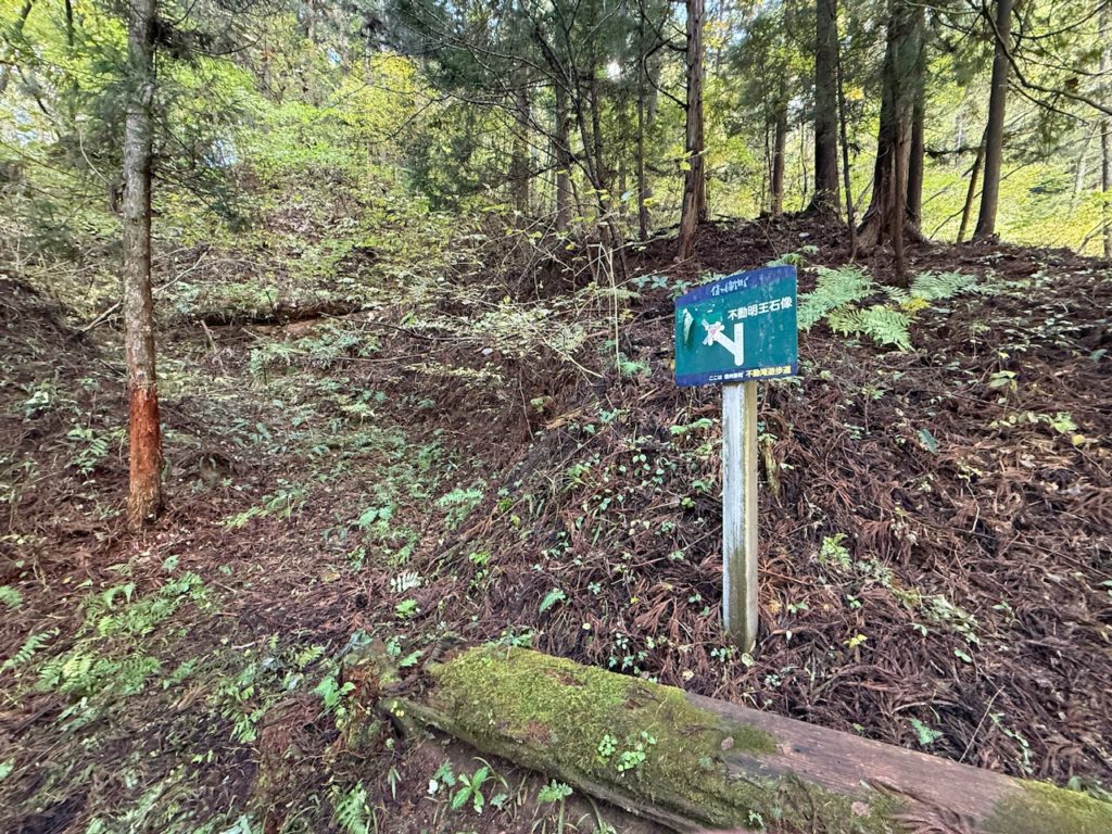 不動滝への道案内の看板が立てられていましたが、通行禁止と記載されていました。