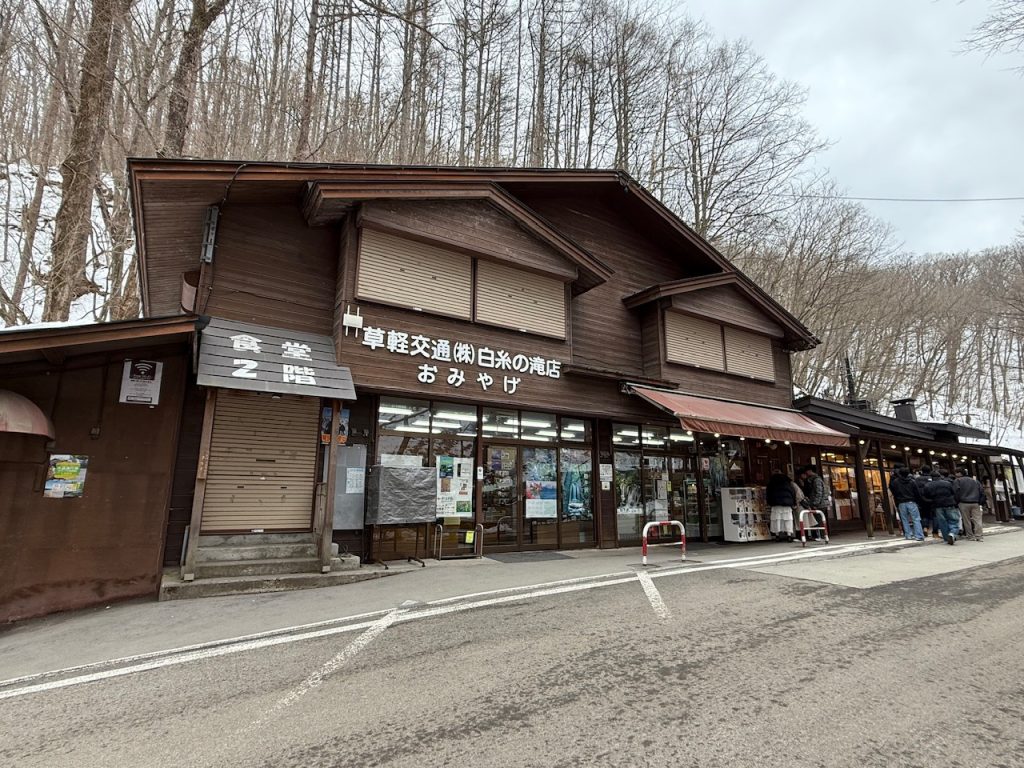 駐車場にはトイレとお土産屋があり、アイスを食べている人達もいました。