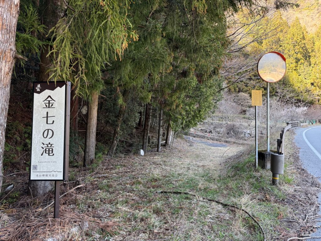 道の駅「遠山郷」から国道152号を走らせて夜川瀬トンネルを抜けてすぐ滝の看板が立てられているのが見えました。