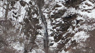 中央アルプス木曽駒ケ岳の麓、風越山の裾野を源流とする木曽川の支流釜中沢にかかる「小野の滝」の落差は20m、幅10mの直瀑です。木曽八景の一つとされ、江戸時代には葛飾北斎や安藤広重の浮世絵で「小野ノ瀑布」として描かれています。中山道を旅する人々にひと時の安らぎの場として親しまれ、当時と同じ美しい流れは変わっていませんが、中山道は国道へと変貌し、明治43年には滝の上に鉄道が架けられましたが、コンクリートを最小限に留めて石積みを用いて風情を醸し出しています。厳冬期には氷柱となって凍結した姿を見る事ができます。