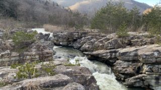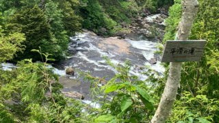 丹沢大山国定公園内にある大山ケーブルカーを乗り、大山の中腹にある大山阿夫利神社から歩くのが一番近いルートです。お店を横の散策路から見晴台方面に歩いた10分程の距離に滝があります。巨岩が2段に別れ上段の断崖より湧水が流れ出たことにより「二重の滝」とされ、江戸時代には滝に打たれて心身を清める滝行もされていたとのことです。