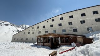 立山アルペンルートの室堂から徒歩40分、神秘的なみくりが池から硫黄が噴き出す地獄谷を過ぎ、標高3000mを超える雄大な立山連峰を望む絶景が広がる高山植物咲き誇る場所に「雷鳴沢ヒュッテ」があります。標高2277mにある雷鳥沢キャンプ場を眼下に見る位置に、山の斜面と一体となってカーブを描いたようなコンクリートの建物は、厳しい自然環境でも耐えられるように設計されています。地獄谷から引湯した温泉を高地の山奥で源泉かけ流しの湯を体験できる特別な環境にある温泉です。